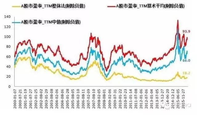 在我们的路演中,发现目前对市场长期趋势还持乐观态度的人,一般是那些去年“股灾”以来仓位就一直很低的投资者,他们在躲过了三轮“股灾”之后,其实也忍不住想要入场“吃口饭”了。但摆在他们面前的一个现实问题是——即使经历了三轮“股灾”,居然还是找不到基本面好估值又便宜的股票,因此无从下手。这些投资者面对的问题用下图可以很直观地表现出来——虽然目前A股整体的PE只有18倍,确实已经回落到了比较低的位置,但是如果看算术平均的PE却高达 94倍,看PE中值也高达66倍,都还处在历史高点上,远未到“正常水平”。我们都知道,估值是“快变量”,盈利是“慢变量”,因此进入股市的长期资金往往都是赚盈利的钱,而不是赚估值的钱,他们只会在估值中枢比较稳定的时候才会进场,否则估值的大幅波动会完全抹杀掉盈利扩张的收益,现在来看还没到他们要进场的时候。