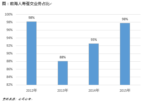 (1)久期错配的风险。我们在《万科鹿死谁手之二:宝能的前世今生》中提到,前海人寿是典型的资产驱动负债型险企,保费端,前海人寿主销短期趸交型的万能险,提供较高的结算利率,投资行为较为积极,投资端,前海人寿通过在二级市场举牌来实现长期股权投资,以高投资收益率来覆盖负债端的高成本,自前海人寿成立以来,万能险产品占比一度高达97%,趸交业务占比最高达98%,这种发展模式存在久期错配的隐忧,进而影响到公司经营稳定性。
