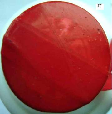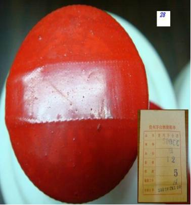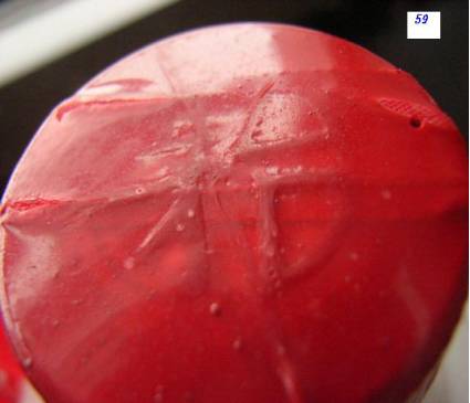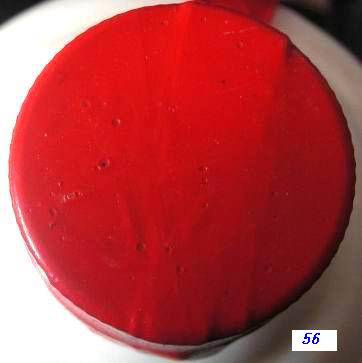 (1)色泽。红色比较沉,不是很鲜艳,暗红(图56)。可能是胶的材料不一样,八十年代的红胶帽要比九十年代鲜亮光滑一点。