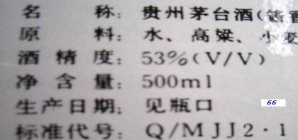 一是标贴不正,一票否决。这是鉴别茅台的第一步。依次研究飞天标、日期标签、正标、背标或外盒,这些部位比较直观也比较容易对照,如果在这些部位中发现与你掌握的正品资料有明显不一致的地方,那么,不用看其他了,请你远远离开。