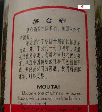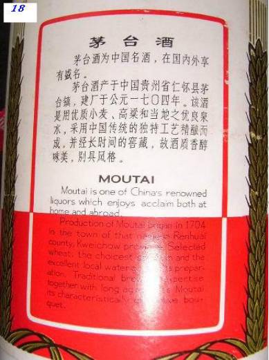 3、背标:隶书“茅台酒”,中文简体说明。英文字体是不是特别顺眼(图18)