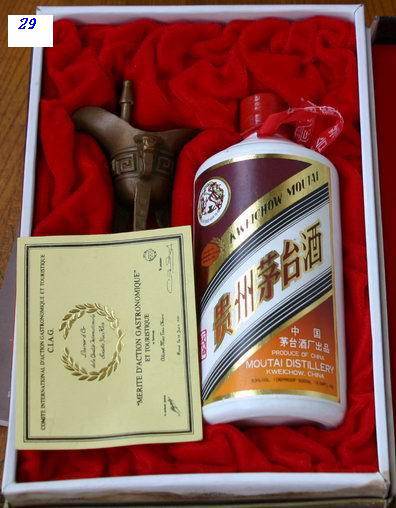 提示:1986年初500ML珍品茅台开始生产,封口就是铝盖有飘带(图29)。