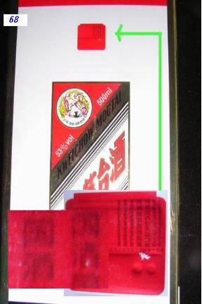(六)自2002年起,外盒的茅台瓶图案中,瓶口部位印有“国酒”的小字(图68)。