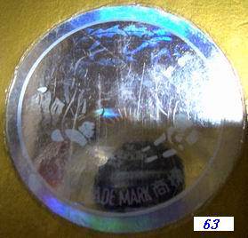(一)自1993年8月26日起,飞天茅台包装盒顶盖上采用了激光防伪标志,开始是飞天图案(图63,五星茅台为五星图案),2001年起激光防伪标飞天五星都改为茅台图案(图64)。