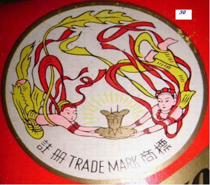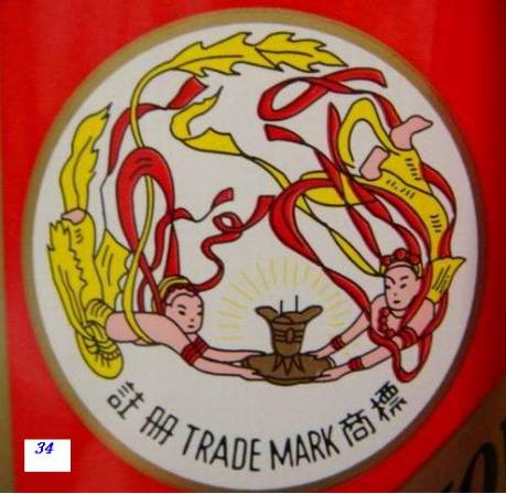 茅台酒厂委托香港德信行代理,在海外进行商标注册,当时注册商标为“车轮牌”(《茅台酒厂志》的表述),标纸上“台”字有草字头(苔),1956年3月改“苔”为“台”(图1、图2)。