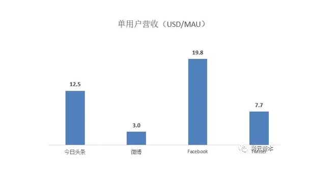 即便在内容上有着天然的缺陷,但是从财务数据上来看,头条却取得了史无前例的成功,如果按照2017年营收目标25亿美金,2亿MAU计算,今日头条的流量变现效率远远甩开国内的竞争对手,目前仅落后于Facebook,而且如果明年完成300亿的保底,那么超过Facebook几乎毫无悬念。