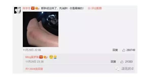 11月20日陈学冬在奚梦瑶摔倒之后的微博Po图留言,随即大批围观群众赶到现场,奚梦瑶陈学冬成为热搜,事件开始发酵,成为了一个娱乐事件现场,最终该条评论收获了28万次点赞。