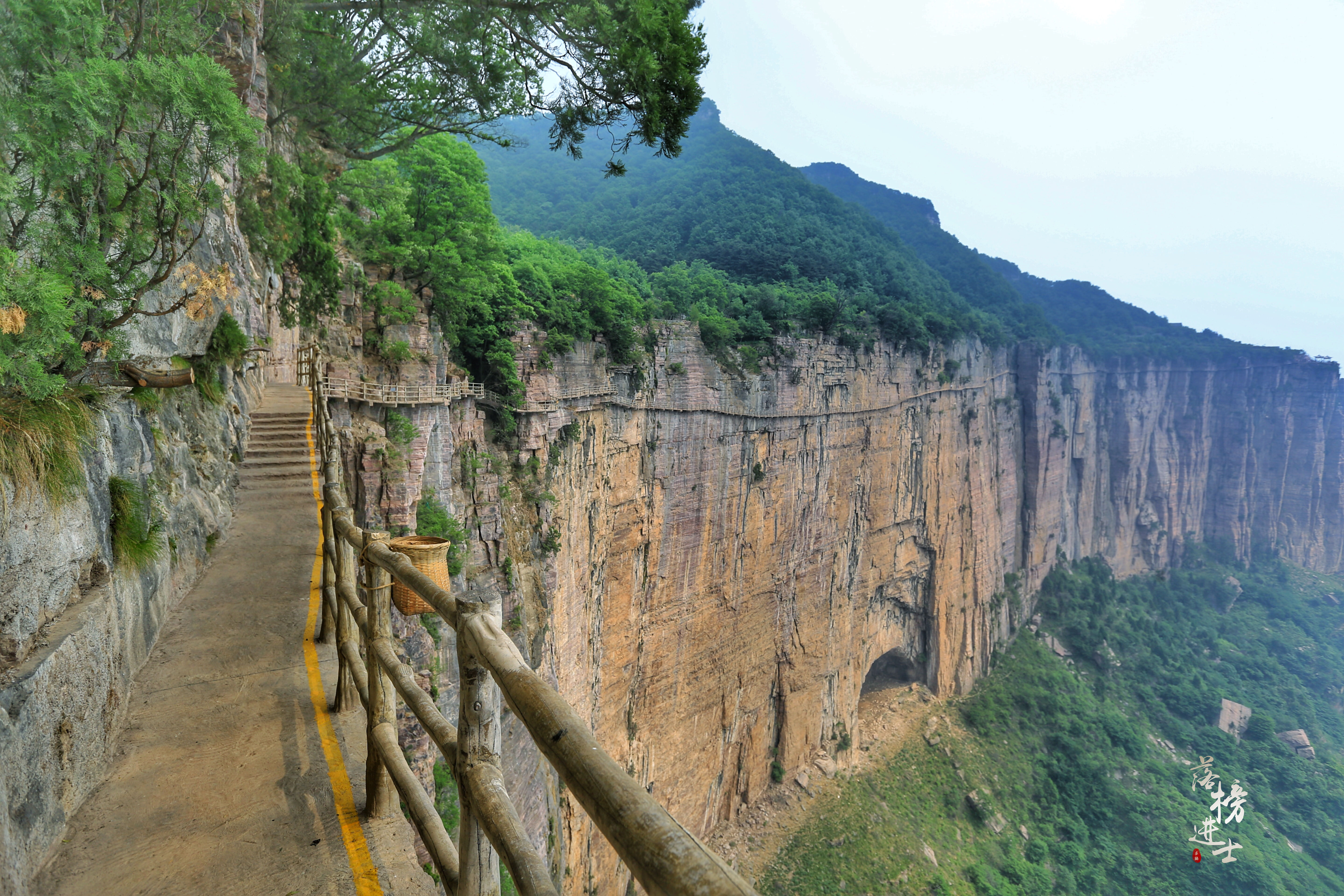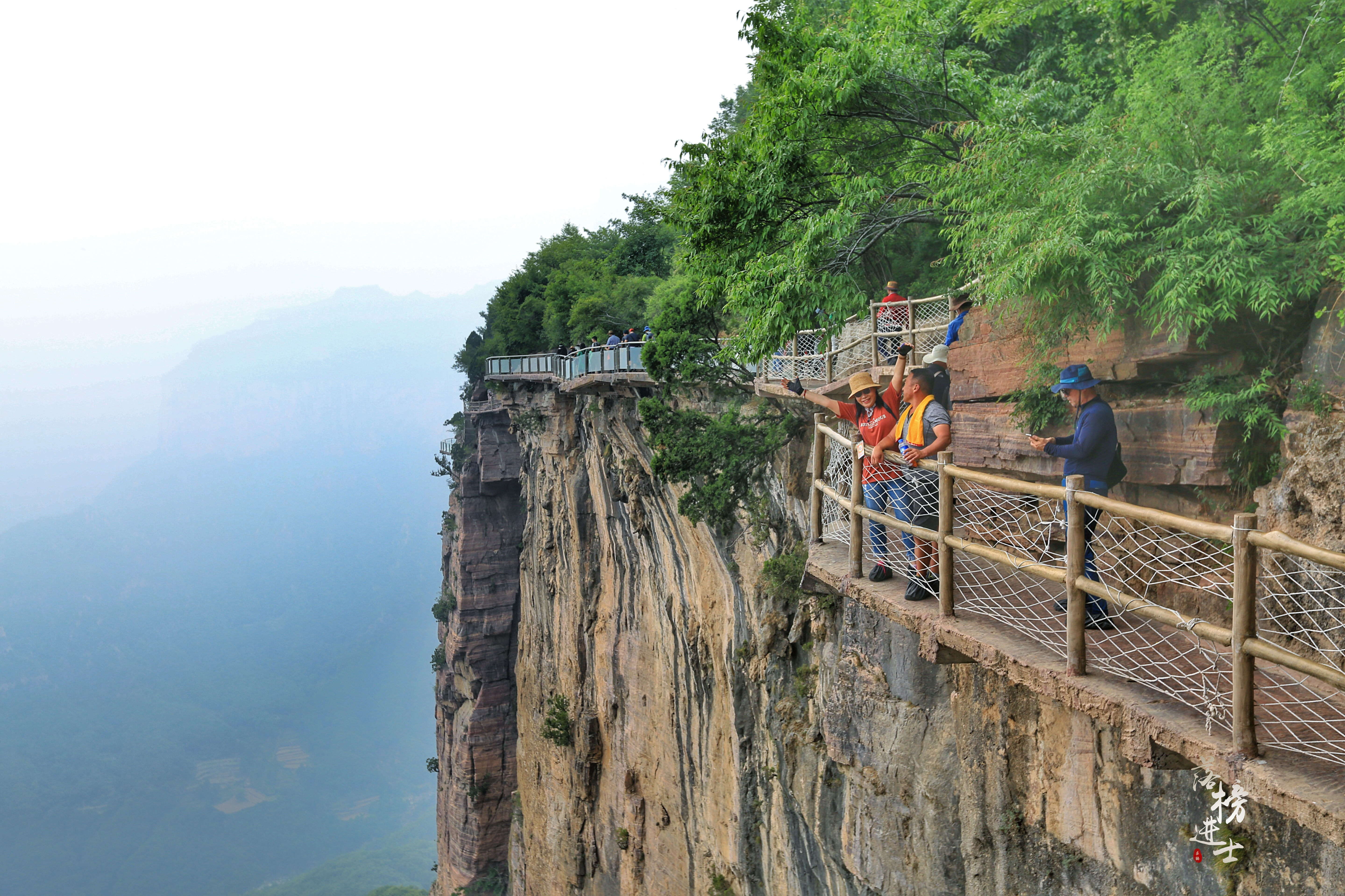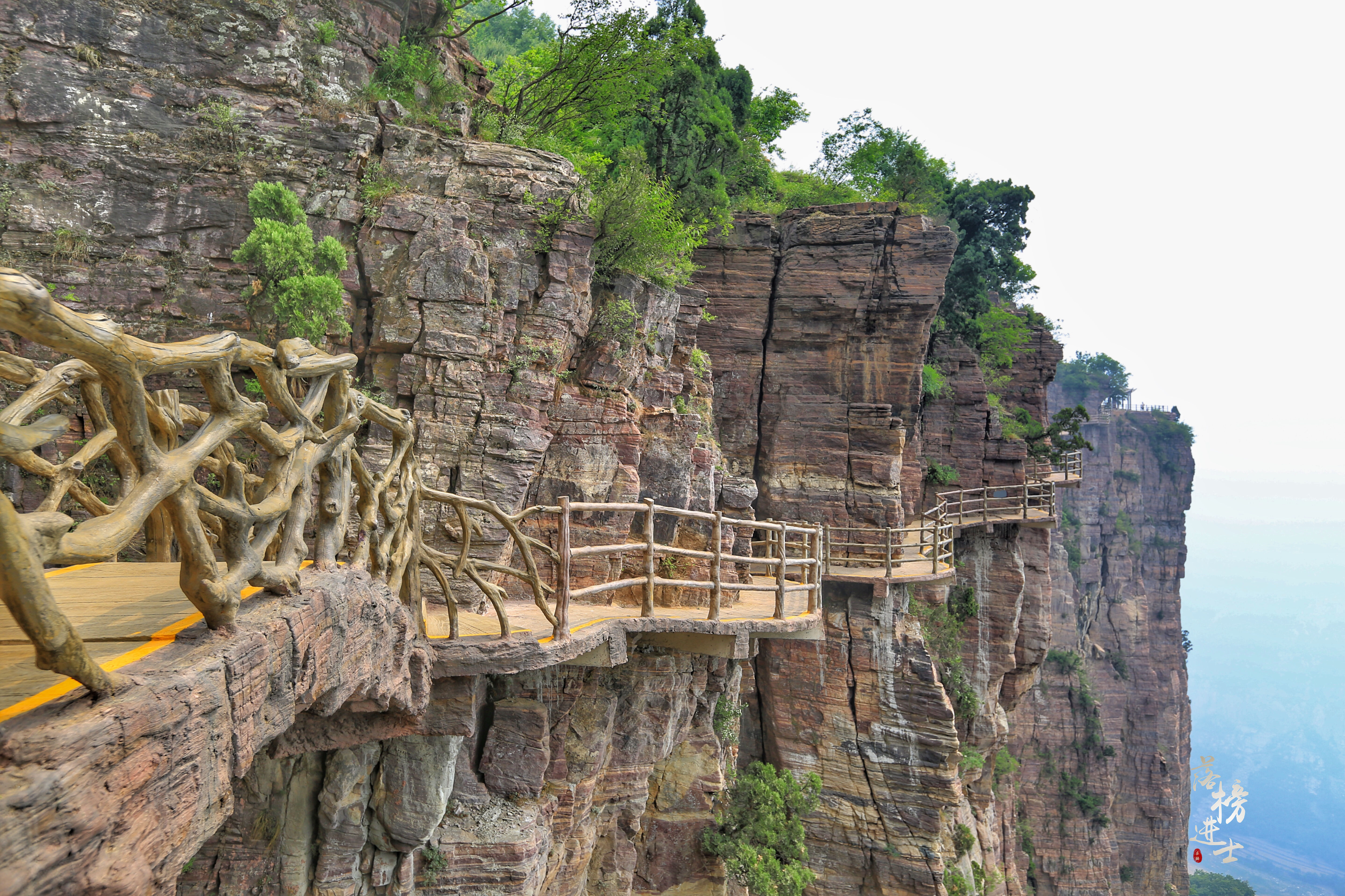 老爷顶海拔高达1570米,因其雄、秀、险、峻,被誉为“太行第一峰”,这些木质栈道往往修建在顶部的悬崖峭壁之上,穿行其间,犹如凌波微步,刺激无比。