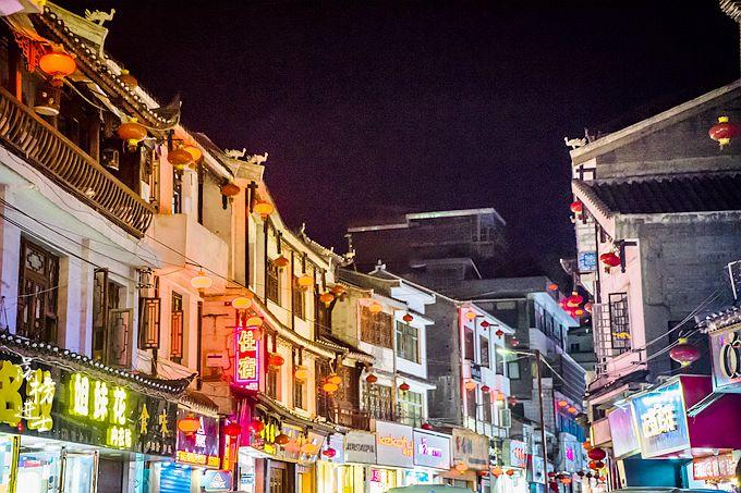 步行街是织金夜晚最热闹的地方之一。明清古建筑前挂着大红灯笼,灯光将这座山中古城扮出繁华小镇的模样。白天,它是清秀的侗族女子,夜晚,它是妩媚的现代女郎。