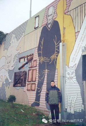 39,2008年摄。我在利本尼区堤坝巷24号作家故居的纪念墙下。