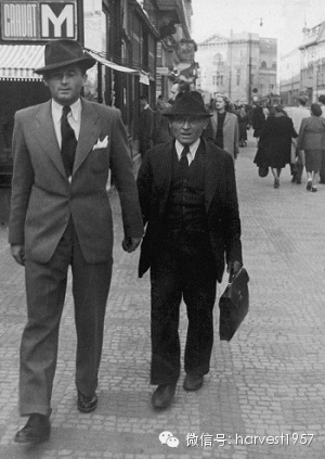 8,1952年摄。与贝宾大伯(继父的哥哥)在布拉格街头。