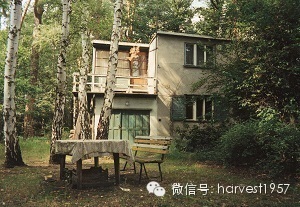 18,1994年摄。在布拉格近郊的克斯克林中小屋外写作。