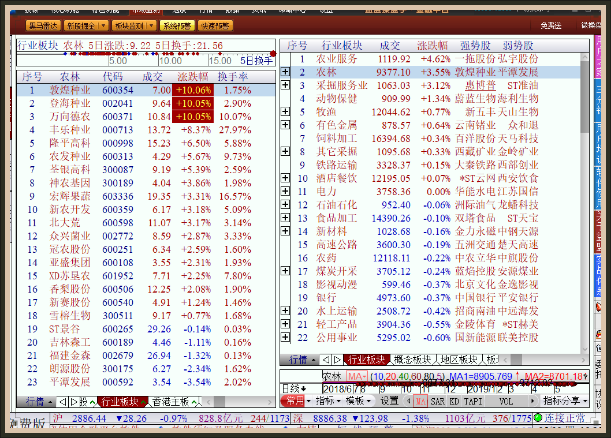 3.上涨板块明只有11个,涨幅最大的是农业服务及农林板块,不可能指望这两个板块拉抬来激发市场认同,因为流通市值前者不及百亿,后者也不过1150亿元,没有任何对抗能力。一定要注意下跌板块的焦点重心,同时注意它们的跌势与跌幅,再从概念板块比较“昨日涨停股”不再有气势,说明今日多方将一败涂地。