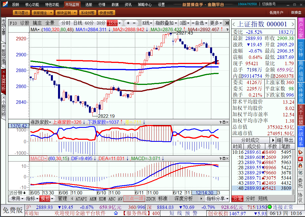 1.【开盘三点】开盘45分钟后解读,属于“高开高走走低压低”,关键是压低后的更低点及10点30分后的演变,这是典型的短线拉高后反手下杀,一旦破位下跌,尤其是跌破周四11点15分收盘,就会形成更大回测;