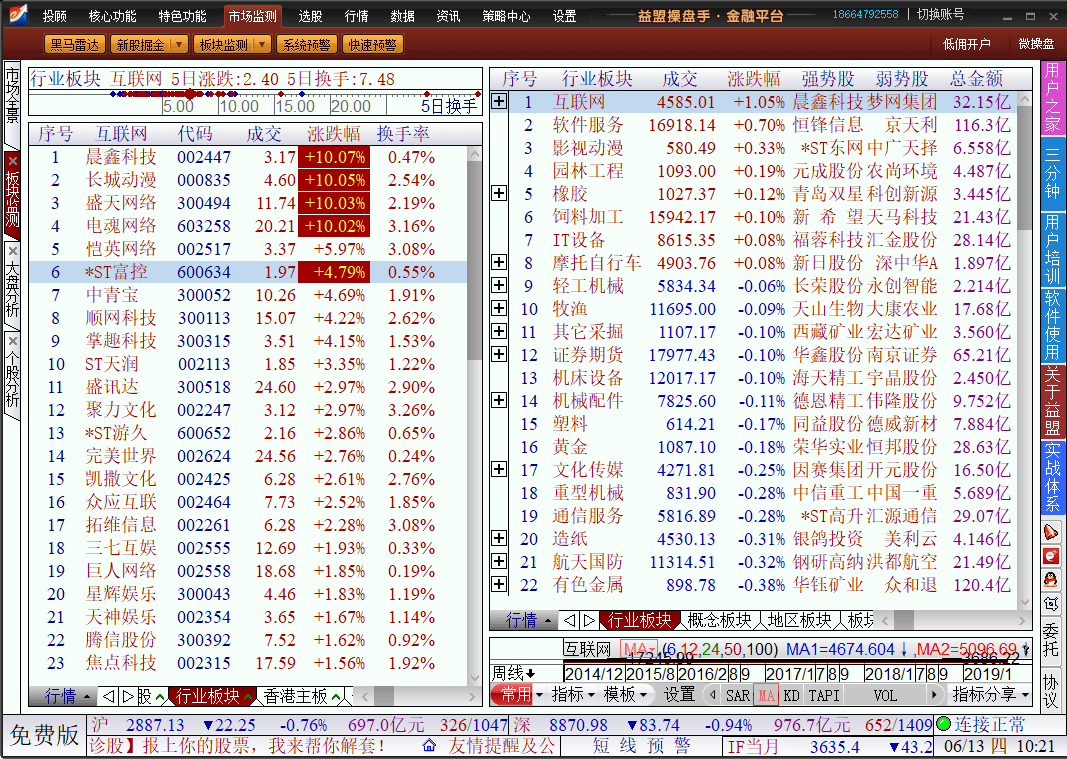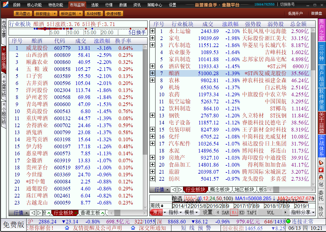 3.上涨板块有船舶制造、重型机械及航天国防主导,这三个板块属于较冷门而且是官股绝对控盘行业,不俱有市场性优势,这样的拉抬炒作存在变数。下跌板块以新材料为主,不是近期炒作的概念暂时被冷处理。