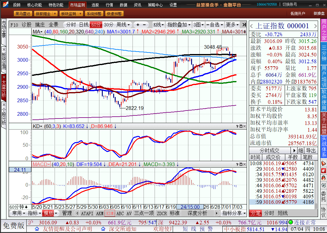 4. 【双保险指标】60KD及10MACD维持稳定修复,无法强势推升助涨,但有瞬间压低的转变倾向,提高警惕。