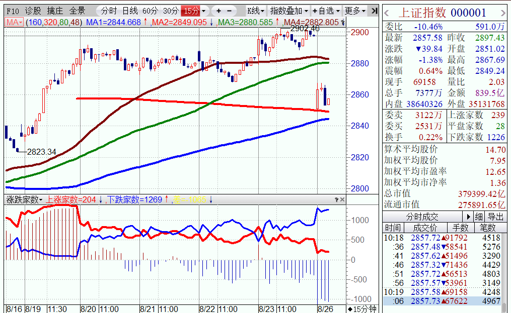 1. 涨跌数量板块比为9:78。数量上不成比率的差距,经过60分钟多空交战后确认跌势更明确;