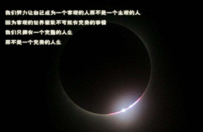 当我们接受不完美的人生时,我们的心依然是快乐的,我们生来不求完美,但我们能让自己求得内心的安宁与平和!我们努力让自己成为一个客观的人而不是一个主观的人!因为客观的世界里就不可能有完美的事情!我们只拥有一个完整的人生,而不是一个完美的人生,只要明白了这一点,我们就是一个聪明的人!也就是一个幸福快乐的人!