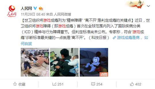 近日,世界卫生组织将游戏障碍列入了国际疾病分类,判定标准仍未公布。这里的“游戏障碍”,主要指的就是通常所说的网络游戏成瘾。