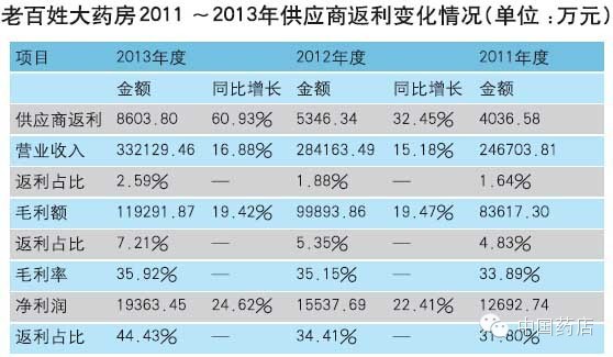 谈及后台利润逐年上升的原因,老百姓大药房方面表示,在于公司的集采比例从2011年度的33.68%上升至2013年度的39.20%。随着采购规模的增大,公司与部分重点供货商加大了合作力度,供应商给予公司的返利额度相应增加。