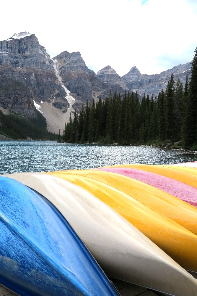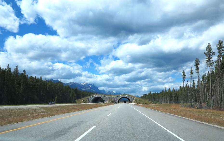 的途中有三处给野生动物修建的通道。渐渐褪去的冰川倒影在冰湖中,鲜花尽情肆意地绽放在放眼所处,静静地,却是灿烂无比地。这一切是那样强烈地愉悦着你的心。班芙人告诉我,MORAINE