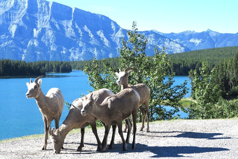 ,车子驶出宿营地,几只山羊目送我们远去,眼神里没有惊恐,淡定从容,在它们的领地,我们必须把脚步慢下来,不要惊扰到它们。从班芙往北约60公里到LACK LOUISE
