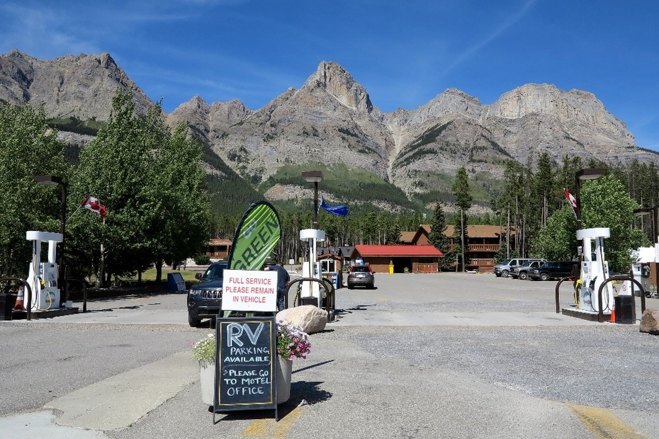 从班芙往西北去Jaspper近300公里的路程,这是唯一的加油站在两点之间。这是我在美加遇到的第一个有人主动热情上来帮你服务加油的,原因是,这里的油价非常贵,每升油比在班芙镇高出三分之一还要多,我看到前面的车子停下即开走了不明就里,等我们加了油才知道,人家热情迫切地把油枪嘴放进你的油箱是担心你看见价目表又跑掉了。事实上我们的邮箱足够开到Jaspper,只是保险起见加了油,结果......看来全世界宰游客的手段都是差不多的。在这里提醒各位开车去班芙游玩的朋友,一定要在班芙镇加满油再出发啦。