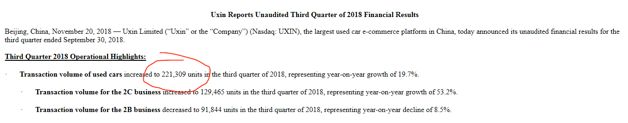 依此可见优信披露的双十二高峰成交数据是包含其自身平台在内的成交数据。优信除了成交数据相比大搜车旗下的弹个车不怎么样之外,更令人蹊跷的是这个所谓的日销量新高竟然低于其此前披露给SEC文件中的Q3的日均销量数据居然前后对不上。