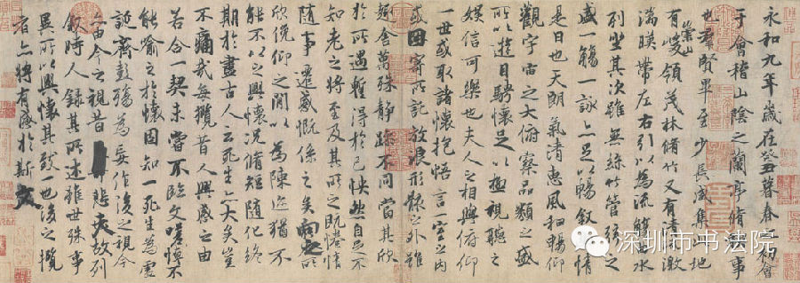 两晋书法最盛时,主要表现在行书上,行书是介于草书和楷书之间的一种字体。其代表作“三希”,即《伯远帖》《快雪时晴帖》《中秋帖》。