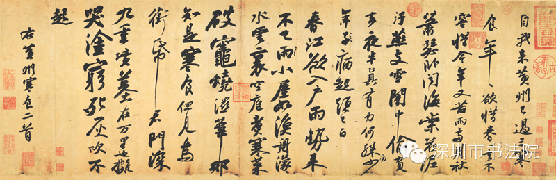 无论是天资既高的蔡襄和自出新意的苏东坡,还是高视古人的黄庭坚和萧散奇险的米芾,都力图在表现自己的书法风貌的同时,凸现出一种标新立异的姿态,使学问之气郁郁芊芊发于笔墨之间,并给人以一种新的审美意境,这在南宋的吴说、陆游、范成大、朱熹、文天祥等书家中进一步得到延伸,然南宋书家的学问和笔墨功底已不能和北宋四家相比了。宋代书法家代表人物是苏、黄、米、蔡。