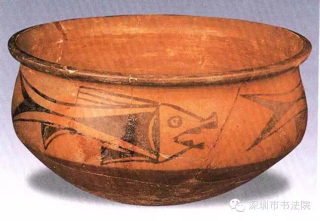 紧接着距今约六千年前的仰绍文化的半坡遗址,出土了有一些类似文字的简单刻画的彩陶。这些符号已区别于花纹图案,把汉文字的发展又向前推进了一步。这可以说是中国文字的起源。