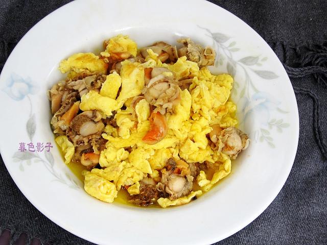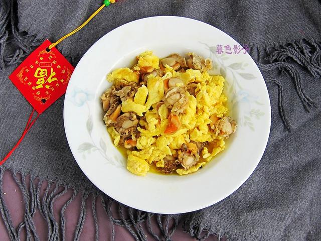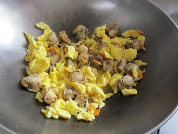 7,炒的扇贝收汁了,加炒好的鸡蛋。