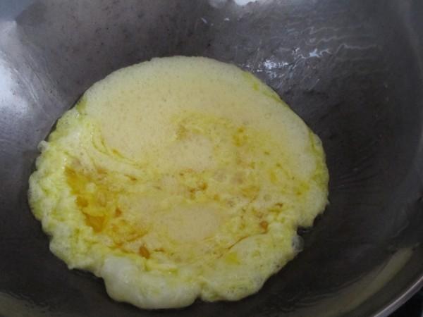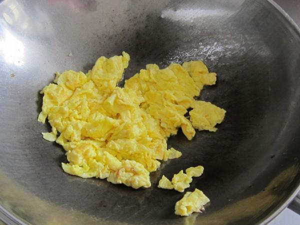5,炒鸡蛋的时候一边炒,一边就把鸡蛋打散了。炒的鸡蛋先盛出来。