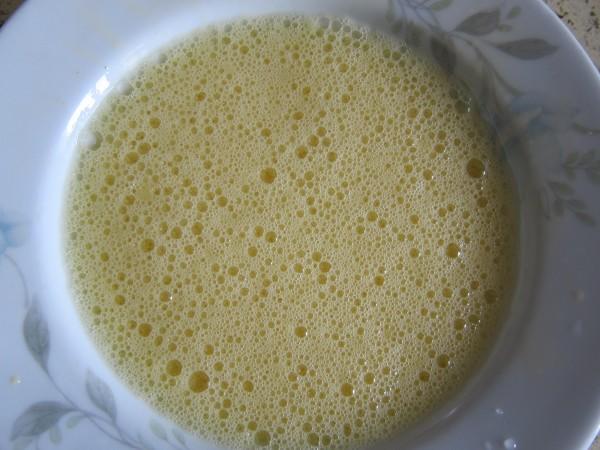 3,鸡蛋先清洗干净,然后擦净水分,打散在盘子里边,加一勺盐。