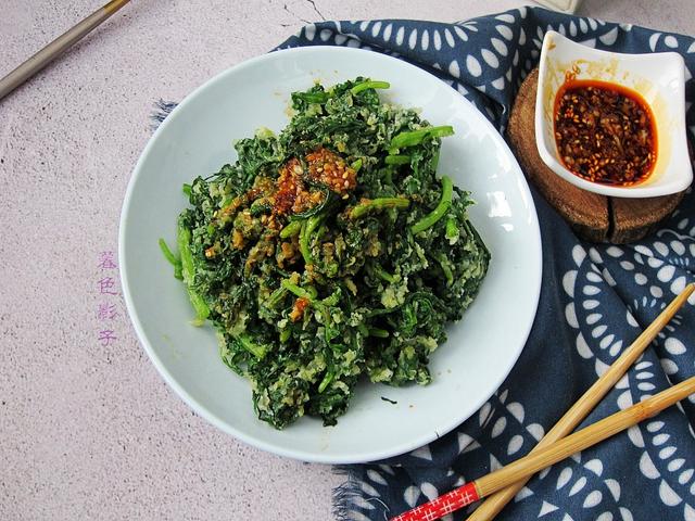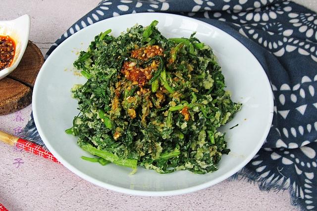 制作步骤;1,茼蒿洗干净,掐成小段,控干水分。然后再准备蒸。
