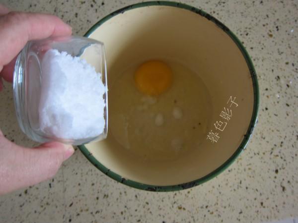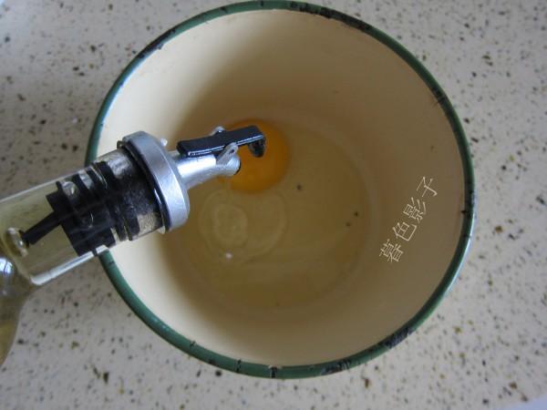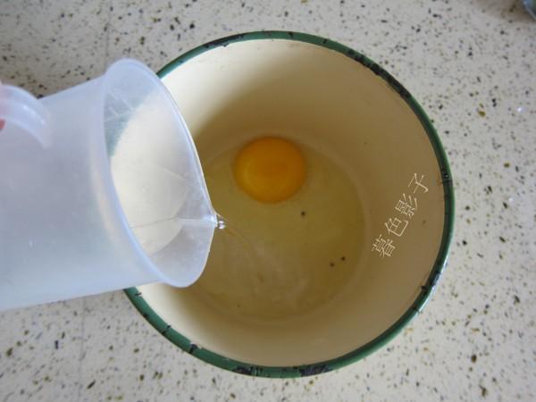 2,鸡蛋磕入容器里,加50毫升的清水。