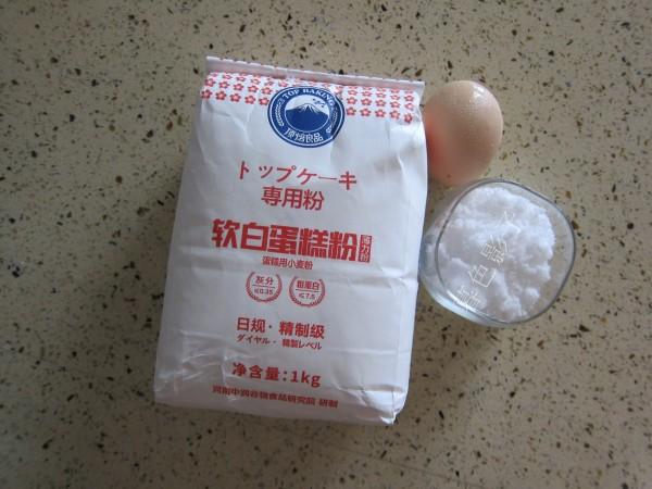 食材;蛋糕粉150克,鸡蛋一个,白糖60克,植物油适量,清水50毫升。