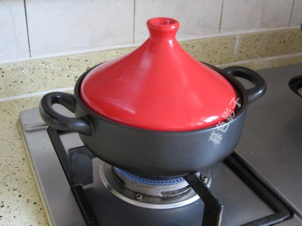 3,开燃气小火焖饭,大约5分钟就会开锅了。只开中间的那个小火,焖10分钟就可以了。