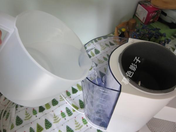 2,把豆浆机里边加满水600毫升。