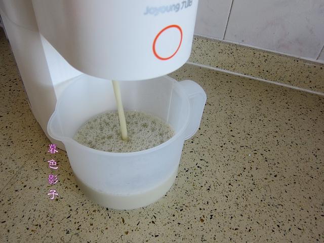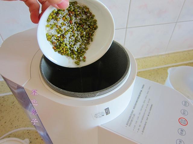 3,把淘洗干净的食材倒进豆浆机的研磨腔,然后再倒入机器的研磨腔内。