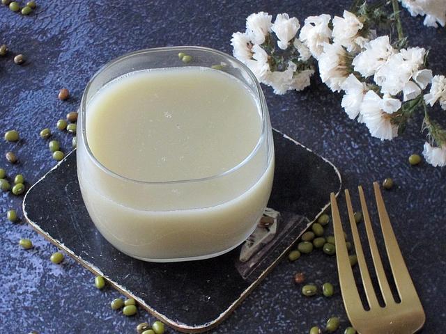 绿豆浆是用绿豆磨制的豆浆,比绿豆汤浓稠、养分足,它将绿豆的绝大部分营养全面地溶入了豆浆中,营养价值更高。