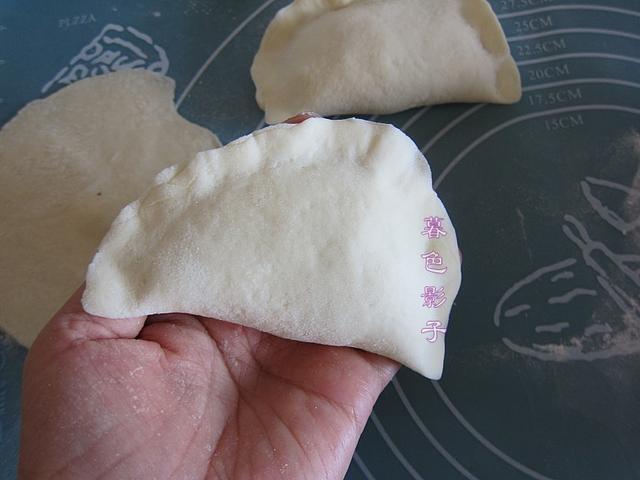 盒子的面皮依然是四边要擀薄,中间稍微厚一点点了,这样擀皮,包的时候拉扯面皮就不会露馅。
