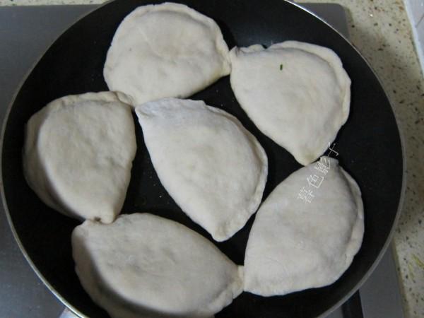 7,用小火烙盒子,多放点油哈,盒子放到锅里,用手按压盒子的厚肚子,按压也不会破的,盒子一边烙好,要翻面烙这面,这时候加一点点的清水在锅里,然后盖上锅盖,还是小火哈。这样焖2,3分钟就熟透了。