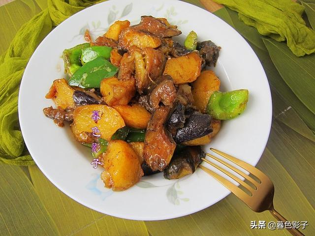 暮色今天也推荐;地三鲜,这菜可以当饭吃了,茄子香软,土豆粉糯,辣椒清脆。