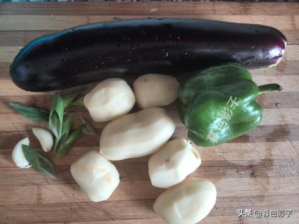 制作步骤:1,准备好食材,茄子和土豆,大辣椒。