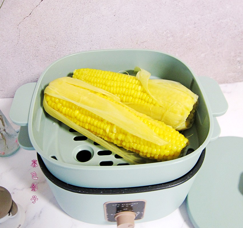 5,放2个玉米在笼屉里边,热一下。