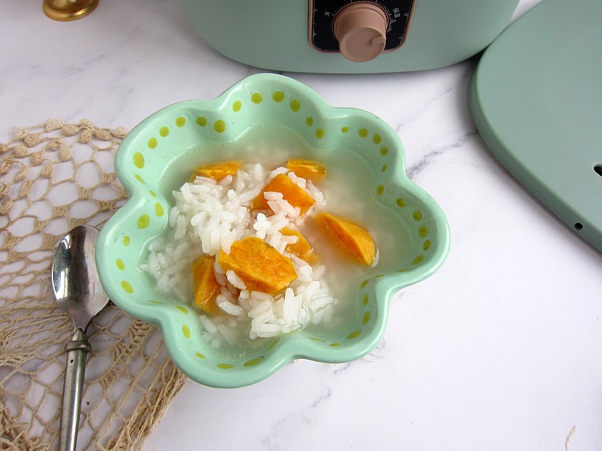 6,红薯大米粥做好了。快捷又方便的早餐。刚好食用不浪费,元气满满的早餐。