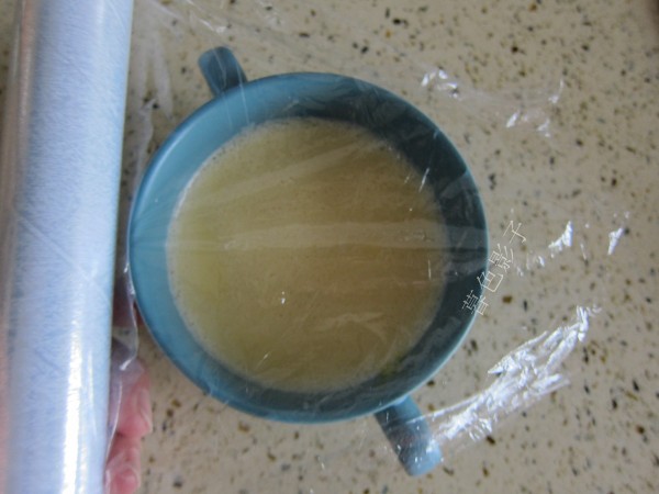 5,用保鲜膜覆盖包好,免得蒸的时候进水滴,记得再用牙签戳几个小洞。