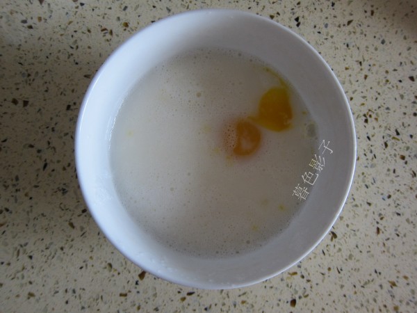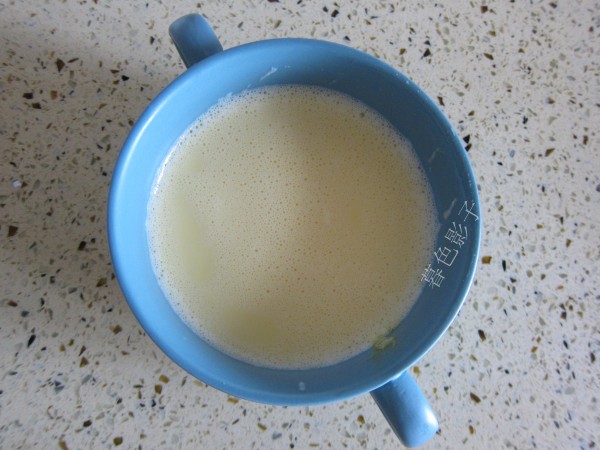2,将鸡蛋打入碗中,加适量的牛奶,准备搅拌。