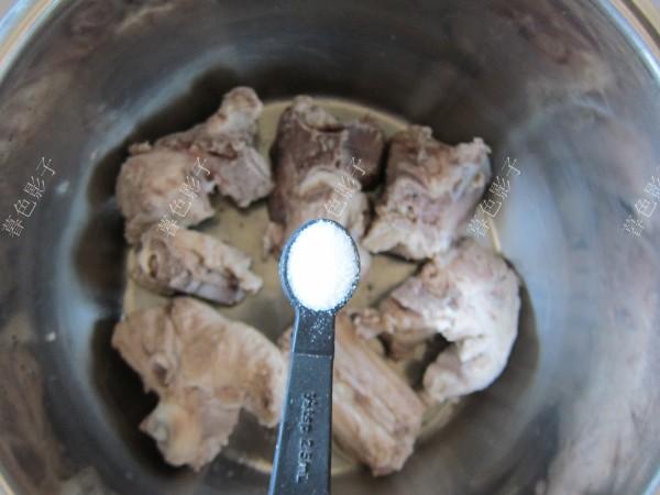 5加一勺食用盐,这样骨头可以吸收盐分。